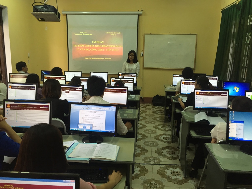 Tại các lớp tập huấn, các học viên được giới thiệu về các tính năng của phần mềm như: Tạo tài khoản, phân quyền tài khoản, thành lập tổ chức bộ máy, cách thức nhập hồ sơ cán bộ công chức viên chức, cách thức kết xuất dữ liệu và tạo báo cáo, thống kê, quy trình nâng lương, bổ nhiệm... Các thắc mắc, phản hồi và góp ý của học viên đều được Đoàn công tác tiếp thu, ghi nhận và giải đáp.