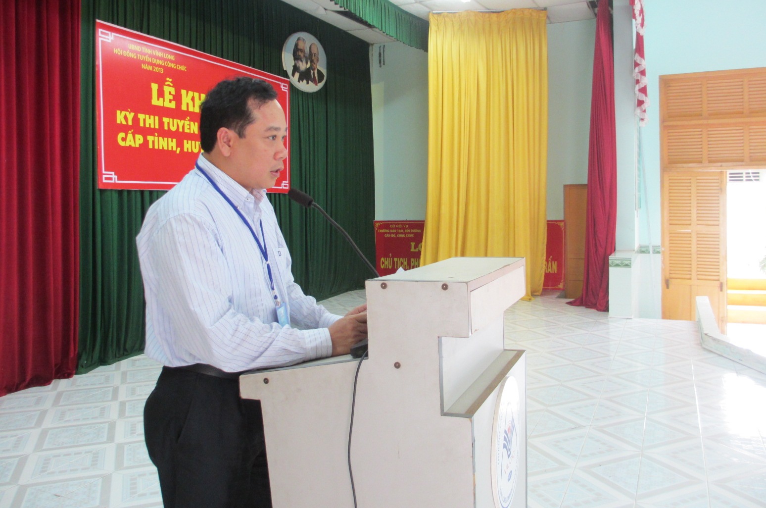 Sau lời phát biểu khai mạc kỳ thi của Phó Chủ tịch Hội đồng thi tuyển công chức tỉnh Vĩnh Long Nguyễn Hiếu Nghĩa, ông Chu Tuấn Tú, Giám đốc Trung tâm Thông tin và Thư viện khoa học, Viện Khoa học tổ chức nhà nước đã phổ biến quy chế thi cho các thí sinh tham gia kỳ thi.