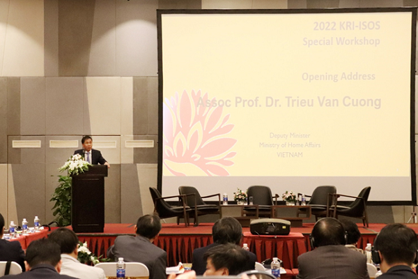 Ngày 25/11/2022 tại Hà Nội, Thứ trưởng Bộ Nội vụ Triệu Văn Cường đã dự và phát biểu khai mạc Hội thảo Khoa học quốc tế đặc biệt năm 2022 với chủ đề “Chia sẻ tri thức và kinh nghiệm trong thực thi chính sách đối với phát triển quốc gia giữa Hàn Quốc và các nước Đông Nam Á (ASEAN) thời kỳ hậu Covid-19” (2022 KRI-ISOS) do Viện Khoa học tổ chức nhà nước – Bộ Nội vụ (ISOS @MOHA) phối hợp với Viện Nghi