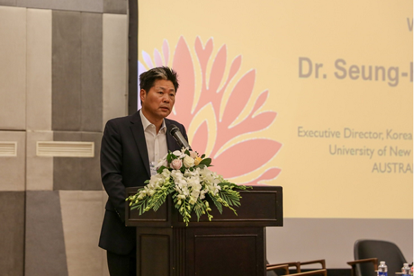 TS. Seung-H Kwon, Giám đốc Viện Nghiên cứu Hàn Quốc, Đại Học New South Wales, Úc phát biểu chào mừng Hội thảo.Phát biểu tại Hội thảo, TS. Seung-Ho Kwon, Giám đốc Viện Nghiên cứu Hàn Quốc đánh giá đại dịch Covid-19 đã đặt ra nhiều thách thức và những thách thức này càng trở nên trầm trọng hơn do căng thẳng địa chính trị và quân sự gia tăng. Việc hình thành quan hệ đối tác chiến lược giữa các quốc gia trở nên quan trọng hơn bao giờ hết. Trong những năm gần đây, Hàn Quốc và các nước ASEAN đã tạo dựng mối quan hệ đối tác ngoại giao, văn hóa – xã hội và kinh tế mạnh mẽ hơn. Khi các điều kiện chính trị, kinh tế và xã hội phát triển nhanh chóng trong thời kỳ hậu Covid-19, Hàn Quốc và các nước ASEAN ngày càng cần phải tham gia đối thoại bền vững và điều chỉnh chiến lược của mình. Hội thảo này sẽ đóng góp vào nỗ lực không ngừng của Hàn Quốc và ASEAN trong việc tăng cường quan hệ đối tác bằng cách cung cấp một diễn đàn độc lập cho sự tham gia của các chính phủ, các nhà hoạch định chính sách công, nhà nghiên cứu và học giả hàng đầu từ Hàn Quốc và 8 quốc gia ASEAN nhằm giải quyết các vấn đề phát triển chính sách quan trọng trong bối cảnh hậu đại dịch. Là mạng lưới nghiên cứu duy nhất chuyên nghiên cứu so sánh chính sách công giữa ASEAN và Hàn Quốc, diễn đàn đã và đang thúc đẩy trao đổi kiến thức trong lĩnh vực phát triển chính sách.