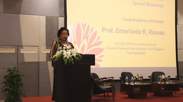 GS. Emelinda R. Roman, Đồng Chủ tịch Ban Cố vấn diễn đàn Nghiên cứu so sánh Chính sách Công (CPPR), Nguyên Giám đốc Đại Học Phi-líp-pin phát biểu chúc mừng Hội thảo